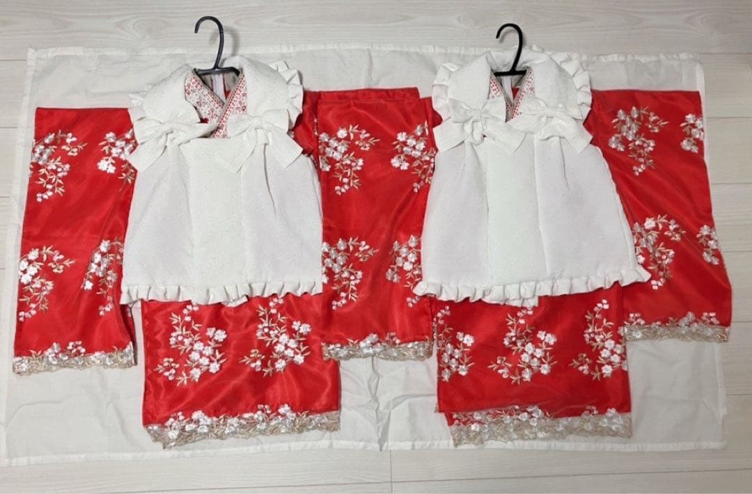 お目にとめていただきありがとうございます。3歳 女の子 七五三セットです。1枚目のお写真セットです。 未使用品 ハンドメイド レースエプロン髪飾り草履セットお着物身丈 72センチ ➕20センチ裄丈 39センチ ➕2センチ3歳前後に肩上げ、腰上げ済みアンティークのお着物です。くすみ感、前見頃、後見頃にシミ汚れがあります。色目につきましては、お手持ちのスマホやパソコンによって多少変わりますのでご了承ください。掲載お写真はできるだけ色目がわかるように、自然光にて撮影しております。used品 ご理解いただける方のみご購入ご検討ください。レース被布エプロンはハンドメイドになります。至らない所があると思いますm(_ _)mご理解いただける方よろしくお願いいたします。ホワイトのレースが上品なエプロンで、お着物・洋服に合わせるとほんのり透けてみえるところも可愛いです♡後ろ紐で結ぶ仕様です。お着物の時は上から被る必要がないので、髪型が崩れません。紐で長さを調整出来ます ( ˆ̑‵̮ˆ̑ ) 後ろで紐を交差させてループに通して結んでください。配送は佐川急便/日本郵便で発送いたします。年齢···3歳