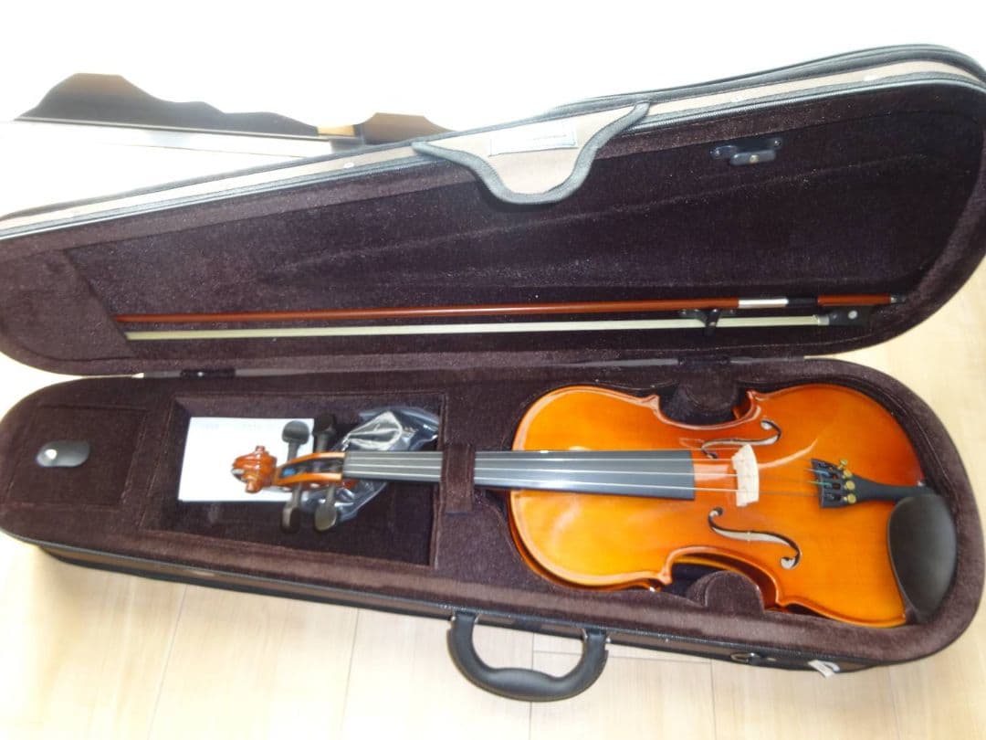 ❤︎ただいま楽器用高級クロス(キョンセーム)もプレゼント中!♡数多くの中から、当商品にご興味をお持ちいただき、ありがとうございます!明るく響きの良い音色が特徴です!楽器の音量、パワーが強く大きく、低音は芯がありまろやかですが、高音はきちんとピクセルが濃く、繊細に響きます。深みのある音を楽しめると思います♪今なら全部セットでお届け。すぐに始められます。駒&魂柱調整済本体&弓クリーニングと磨き済セミハードケース、弓2本、肩当て、松脂、チューナー、消音器を付属します!※どちらも中古品ですのでご注意ください。⭐︎Thank you very much for browsing the product.\r You can buy it immediately ♪【アイテム】valente 中古 バイオリン ヴァイオリン\r\r【モデル サイズ】VN-60 4/4 Anno2011【状態】音出し確認済み、表面ポリッシュ済み駒調整済み、魂柱立て直し新調済み当方で細かく確認やリタッチはしておりますが、楽器一部に傷や凹み、汚れが有ります。※状態は画像にて判断して下さい。中古品の為、神経質な方はご遠慮下さい。ノークレームでお願い致します。\r※中古購入品のため、購入時期や使用頻度についてはお答えできかねます。※他サイトでも出品しているため、購入のタイミングが重なった場合は、お取引をキャンセルさせていただくことがあります。ご了承ください。\r【即納】できる限り楽器店の方法に準じて梱包し、\rプチプチと段ボールに包んでの梱包を行い発送します。【おまけ】今の季節にピッタリな楽器用除湿剤をお付けいたします♫【ご相談】ご不明な点ございましたら、何なりとお申し付けくださいませ。【ご留意ください】※弦について:演奏には支障ありませんが、ご購入後にお好みの弦に交換をお勧めします。⭐︎お手数をおかけしますが、ご購入前に上記の留意事項等を御一読、ご確認いただけますと幸いです。\r#中古バイオリン#4/4#おすすめ#valente#VN60#バイオリン#ヴァイオリン#初心者#初めてセット上記をご確認いただき、ご購入いただけましたら幸いです。\r最後までご覧いただき、ありがとうございました♡